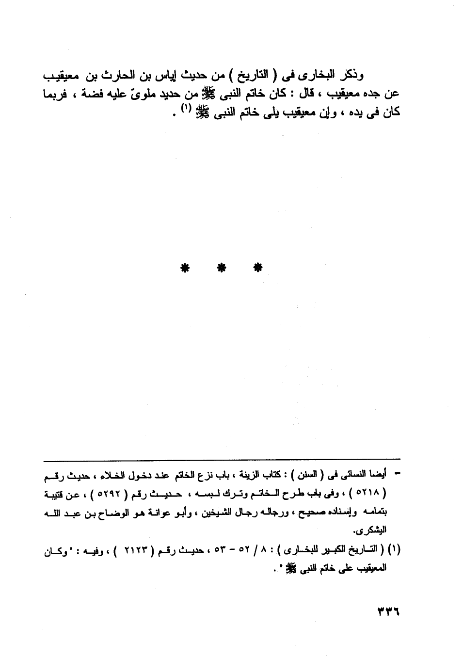 [ (1) ] (التاريخ الكبير للبخاريّ) : 8/ 52- 53، حديث رقم (2123) ، وفيه: «وكان المعيقيب على خاتم النبي صلّى اللَّه عليه وسلّم» .