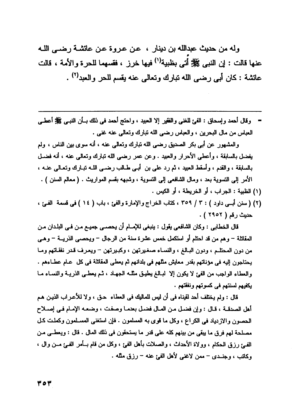 [ (2) ] (سنن أبى داود) : 3/ 359، كتاب الخراج والإمارة والفيء، باب (14) في قسمة الفيء، حديث رقم (2952) .