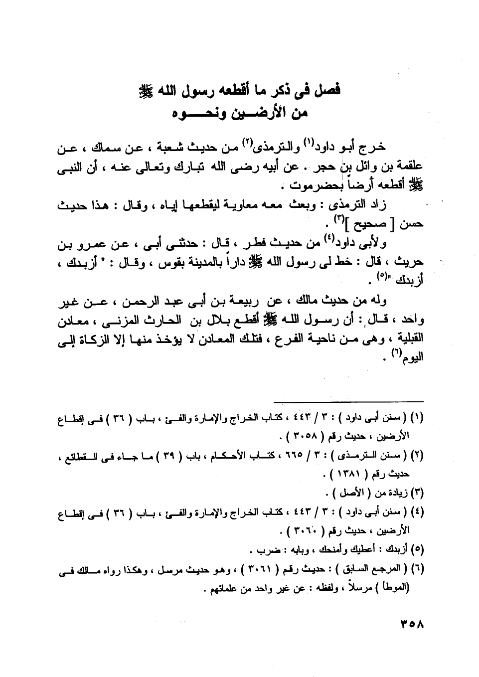 [ (4) ] (سنن أبى داود) : 3/ 443، كتاب الخراج والإمارة والفيء، باب (36) في إقطاع الأرضين، حديث رقم (3060) .