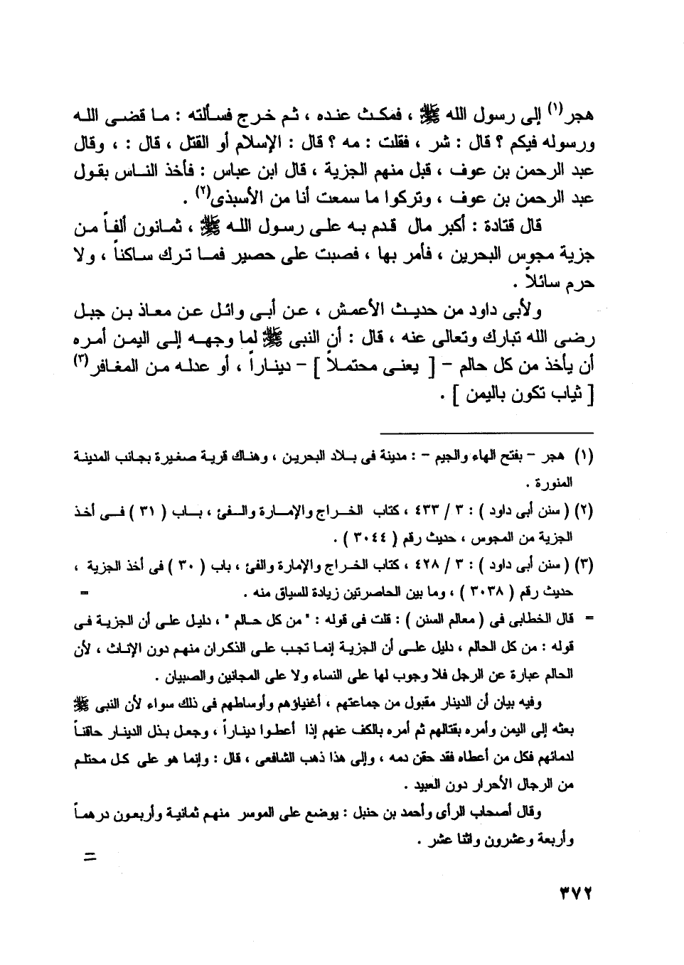 [ (3) ] (سنن أبى داود) : 3/ 428، كتاب الخراج والإمارة والفيء، باب (30) في أخذ الجزية، حديث رقم (3038) ، وما بين الحاصرتين زيادة للسياق منه. -