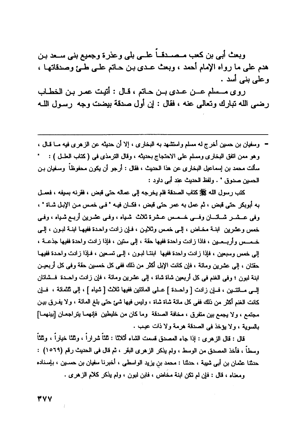 روى مسلم عن عدي بن حاتم، قال: أتيت عمر بن الخطاب رضى اللَّه تبارك وتعالى عنه، فقال: إن أول صدقة بيضت وجه رسول اللَّه