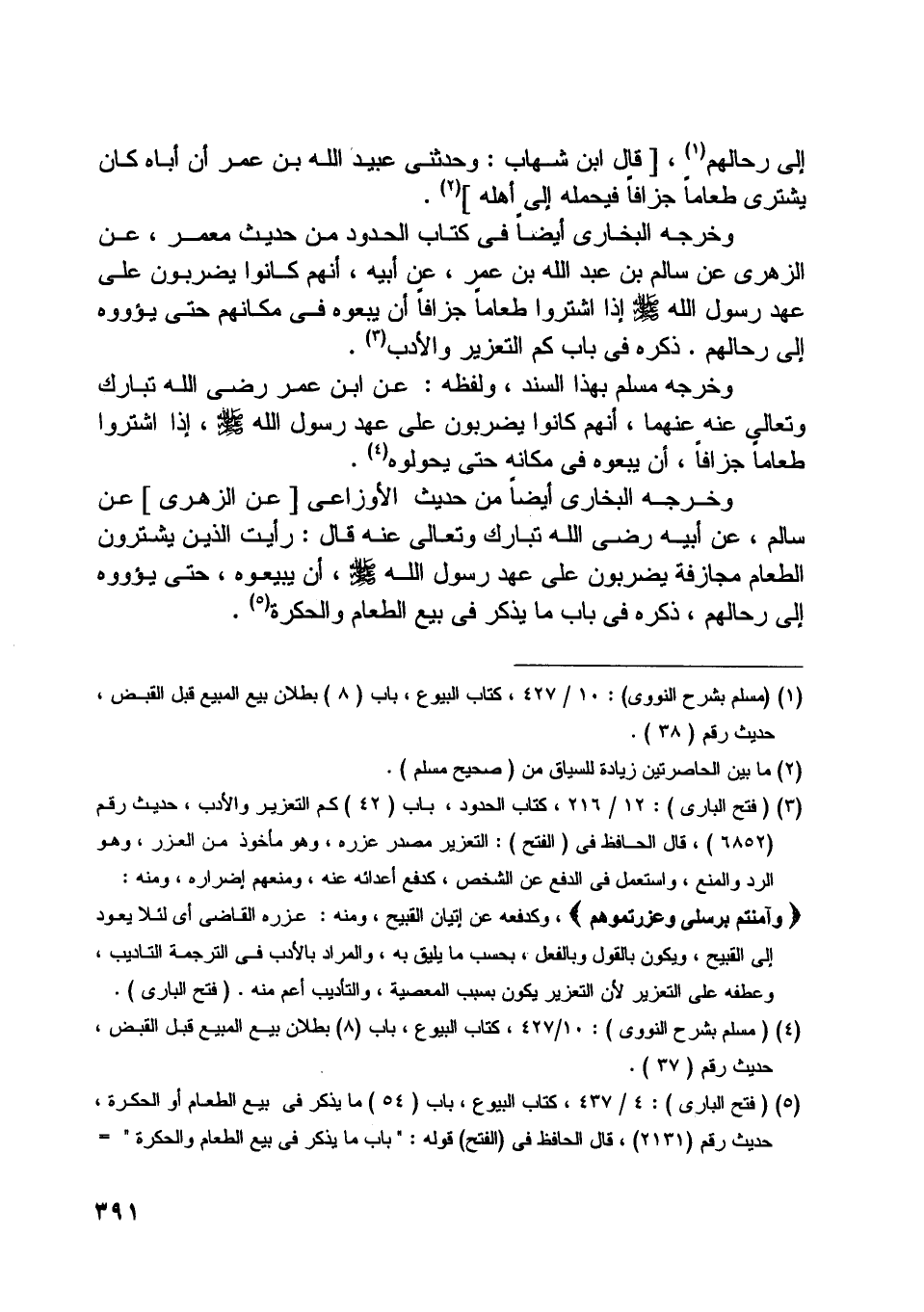 [ (5) ] (فتح الباري) : 4/ 437، كتاب البيوع، باب (54) ما يذكر في بيع الطعام أو الحكرة، حديث رقم (2131) ، قال الحافظ في (الفتح) قوله: «باب ما يذكر في بيع الطعام والحكرة» -