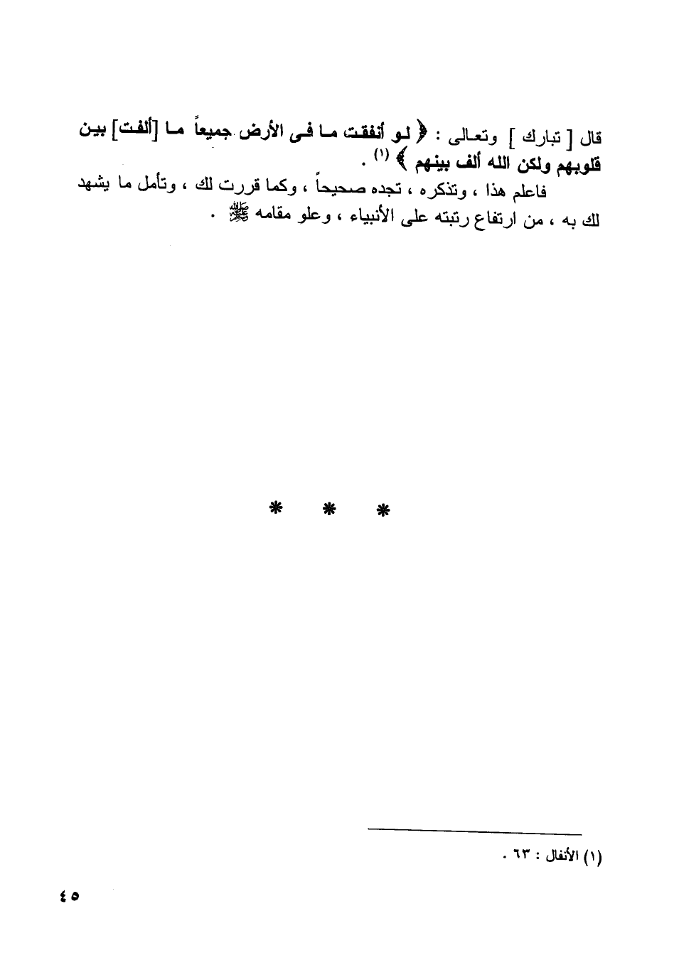قال [تبارك] وتعالى: لَوْ أَنْفَقْتَ ما فِي الْأَرْضِ جَمِيعاً ما [أَلَّفْتَ] بَيْنَ قُلُوبِهِمْ وَلكِنَّ اللَّهَ أَلَّفَ بَيْنَهُمْ [ (1) ] .