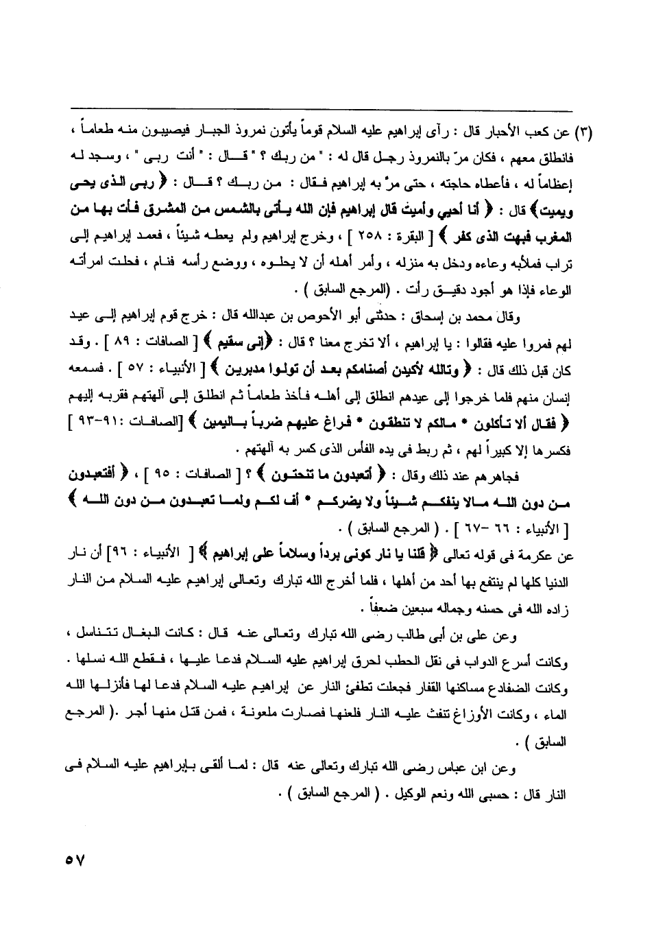 وعن ابن عباس رضى اللَّه تبارك وتعالى عنه قال: لما ألقى بإبراهيم عليه السّلام في النار قال: حسبي اللَّه ونعم الوكيل. (المرجع السابق) .