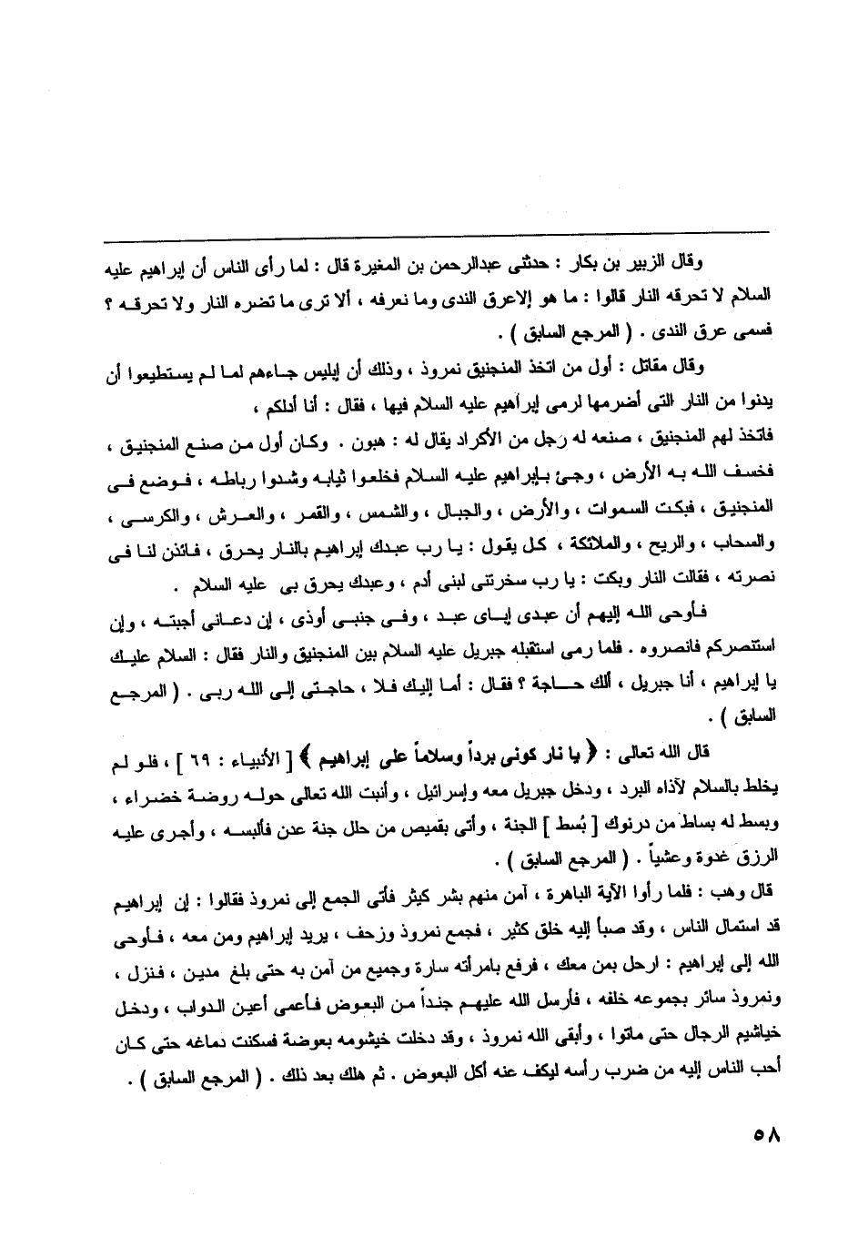 [ () ] وقال الزبير بن بكار: حدثني عبد الرحمن بن المغيرة قال: لما رأى الناس أن إبراهيم عليه السلام لا تحرقه النار قالوا: ما هو إلا عرق الندى وما نعرفه، ألا ترى ما تضره النار ولا تحرقه؟