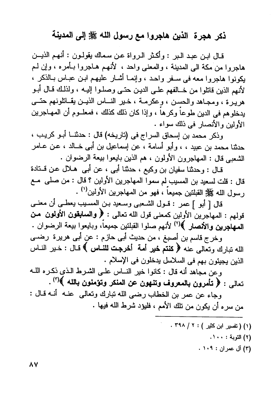 قال [أبو] عمر: قول الشعبي وسعيد بن المسيب يعطى أن معنى قولهم: المهاجرين الأولين كمعنى قول اللَّه تعالى: وَالسَّابِقُونَ الْأَوَّلُونَ مِنَ الْمُهاجِرِينَ وَالْأَنْصارِ [ (2) ] لأنهم صلوا القبلتين جميعا، وبايعوا بيعة الرضوان.