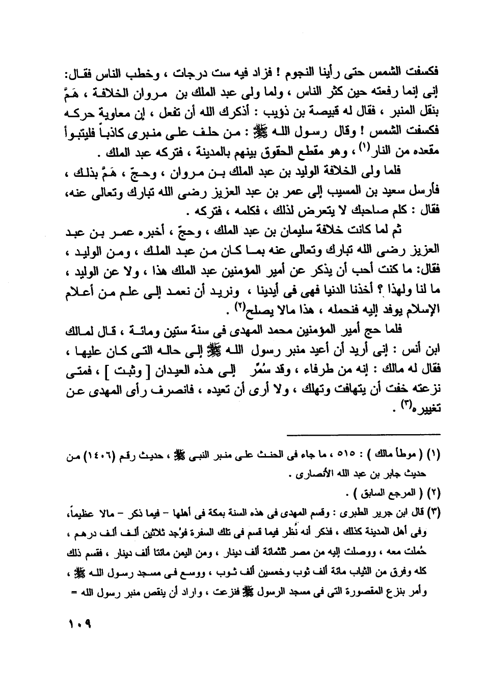 [ (1) ] (موطأ مالك) : 515، ما جاء في الحنث على منبر النبي صلى اللَّه عليه وسلّم، حديث رقم (1406) من حديث جابر بن عبد اللَّه الأنصاري.