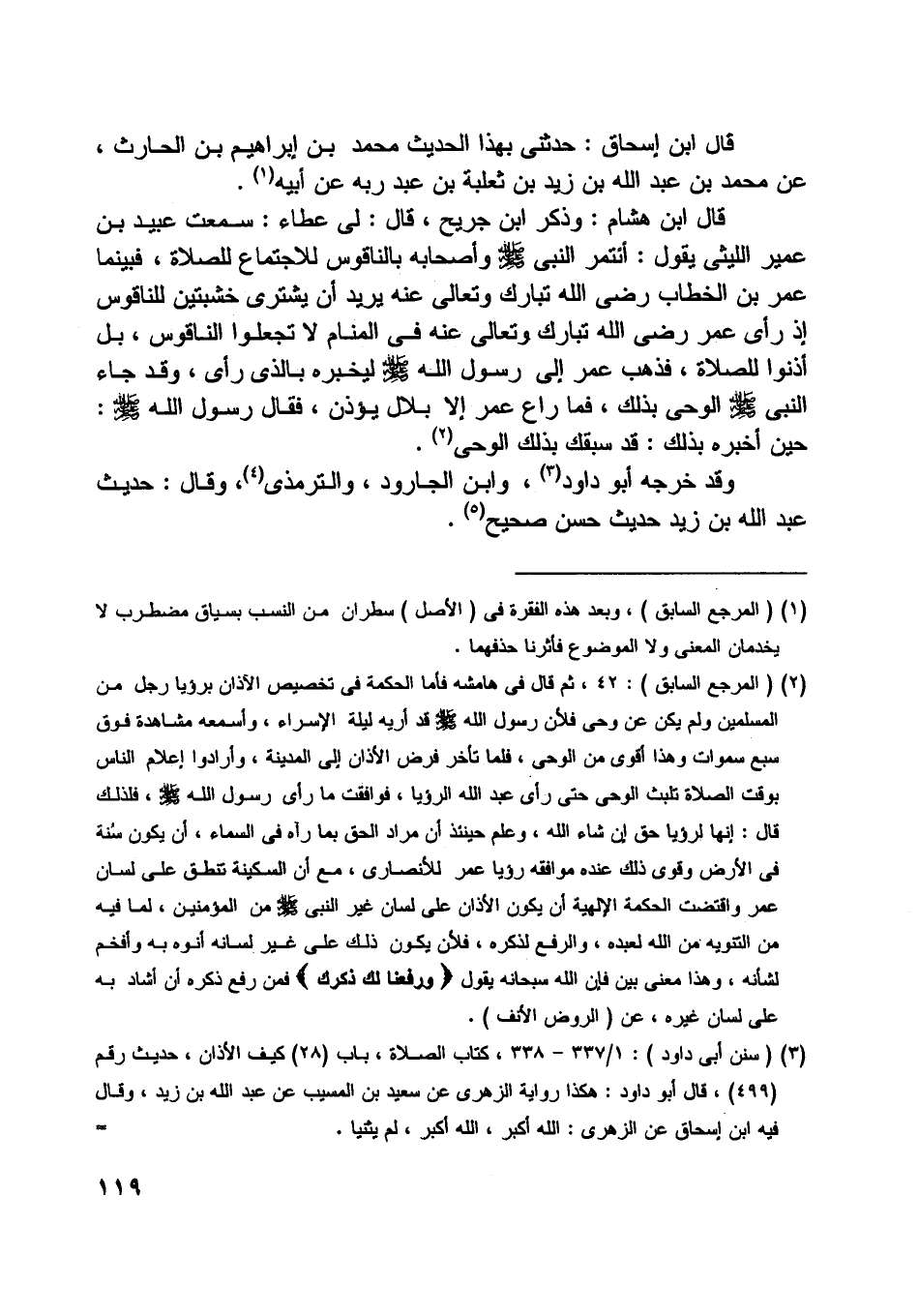 قال ابن إسحاق: حدثني بهذا الحديث محمد بن إبراهيم بن الحارث، عن محمد بن عبد اللَّه بن زيد بن ثعلبة بن عبد ربه عن أبيه [ (1) ] .