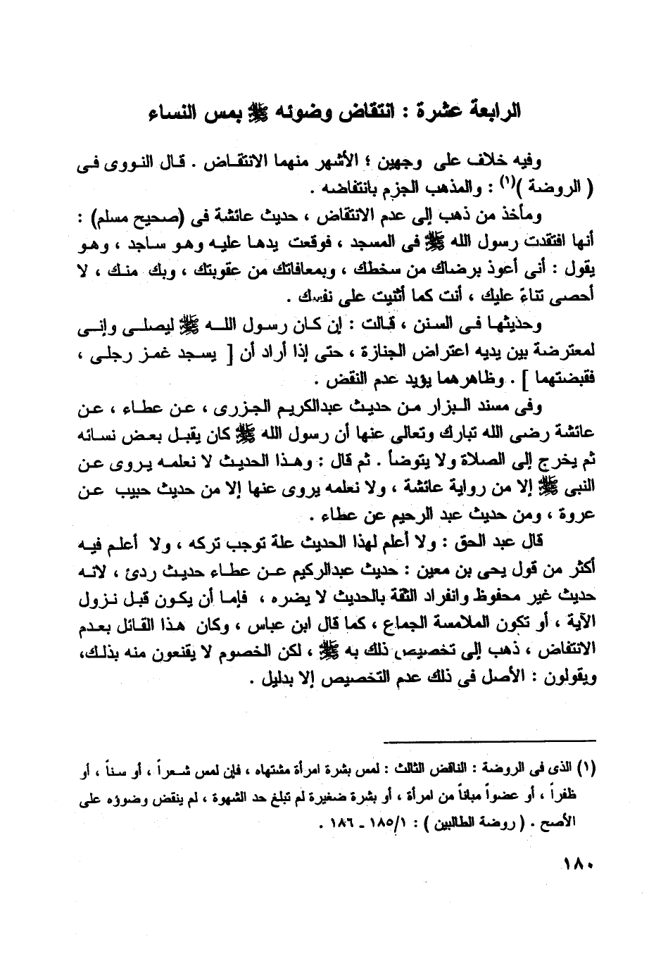 [ (1) ] الّذي في الروضة: الناقض الثالث: لمس بشرة امرأة مشتهاه، فإن لمس شعرا، أو سنا، أو ظفرا، أو عضوا مبانا من امرأة، أو بشرة صغيرة لم تبلغ حد الشهوة، لم ينقض وضوؤه على الأصح. (روضة الطالبين) : 1/ 185- 186.