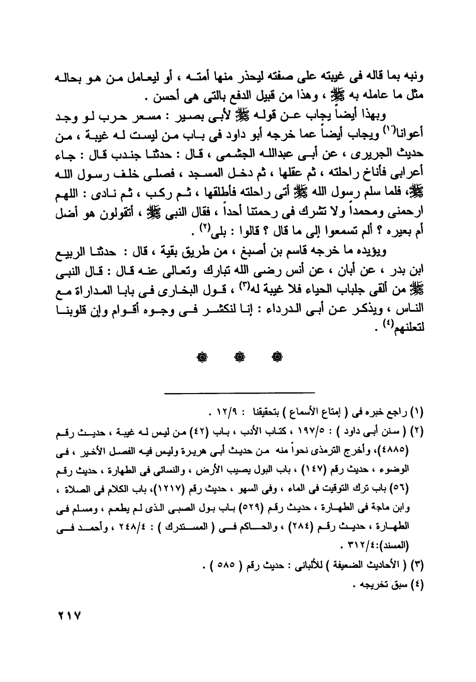 [ (2) ] (سنن أبى داود) : 5/ 197، كتاب الأدب، باب (42) من ليس له غيبة، حديث رقم (4885) ، وأخرج الترمذي نحوا منه من حديث أبى هريرة وليس فيه الفصل الأخير، في الوضوء، حديث رقم (147) ، باب البول يصيب الأرض، والنسائي في الطهارة، حديث رقم (56) باب ترك التوقيت في الماء، وفي السهو، حديث رقم (1217) ، باب الكلام في الصلاة، وابن ماجة في الطهارة، حديث رقم (529) باب بول الصبى الّذي لم يطعم، ومسلم في الطهارة، حديث رقم (284) ، والحاكم في (المستدرك) : 4/ 248، وأحمد في (المسند) : 4/ 312.