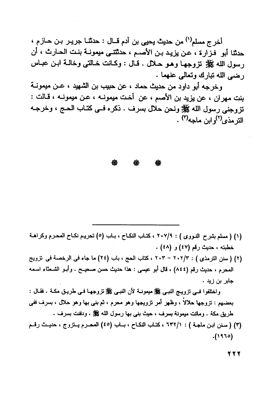 [ (1) ] (مسلم بشرح النووي) : 9/ 207، كتاب النكاح، باب (5) تحريم نكاح المحرم وكراهة خطبته، حديث رقم (47) و (48) .
