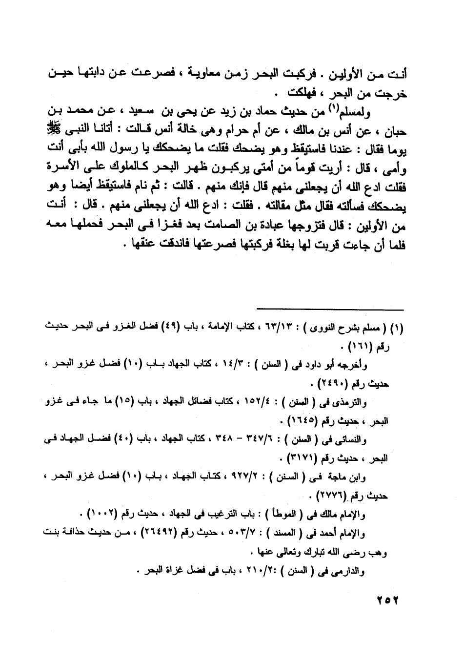 وابن ماجة في (السنن) : 2/ 927، كتاب الجهاد، باب (10) فضل غزو البحر، حديث رقم (2776) .