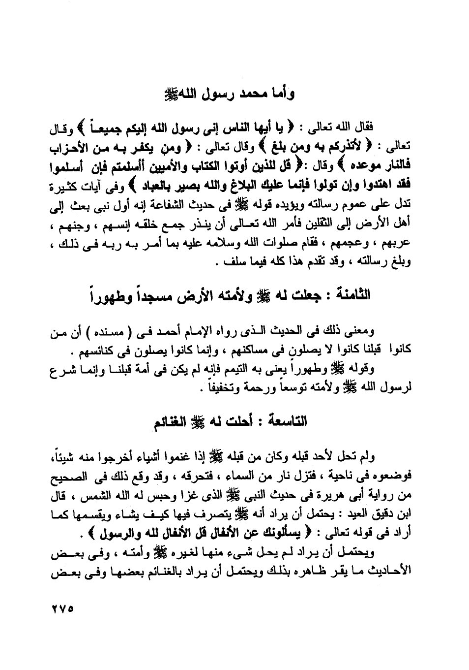 التاسعة: أحلت له صلى اللَّه عليه وسلّم الغنائم