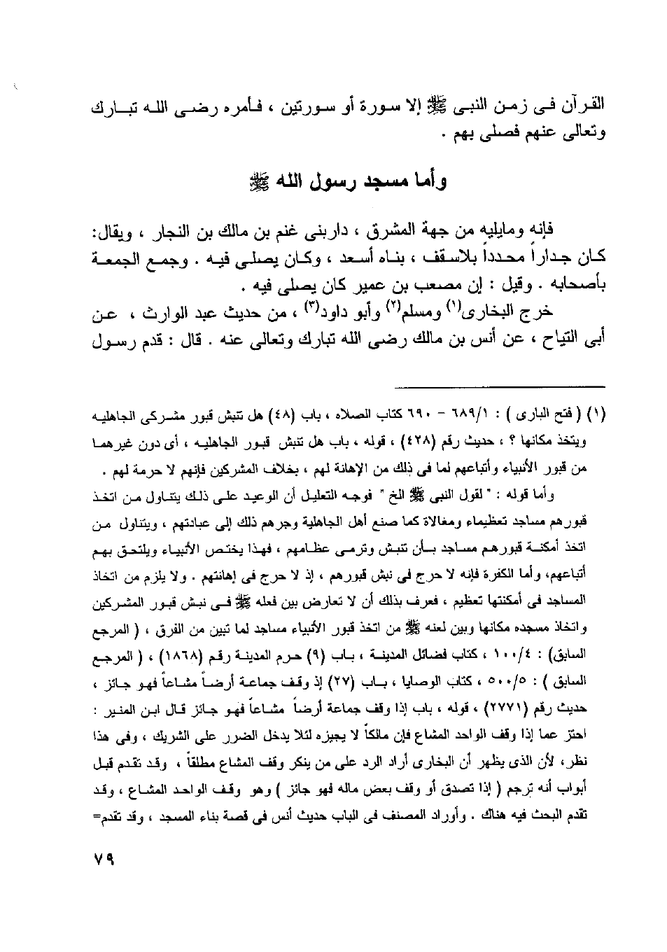 وأما مسجد رسول اللَّه صلى اللَّه عليه وسلّم