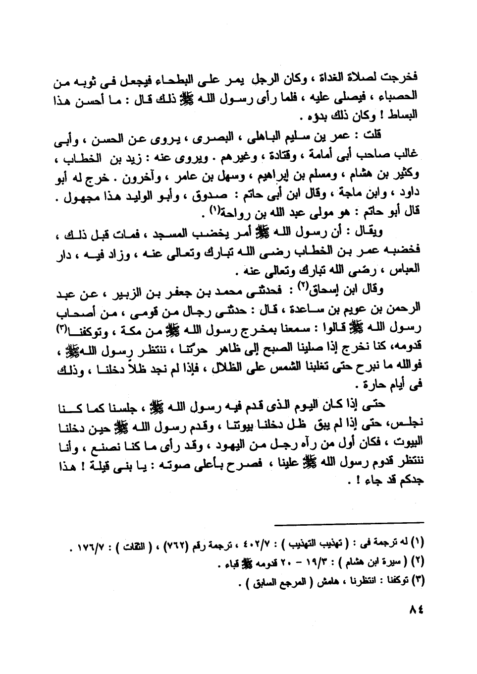 [ (2) ] (سيرة ابن هشام) : 3/ 19- 20 قدومه صلى اللَّه عليه وسلّم قباء.