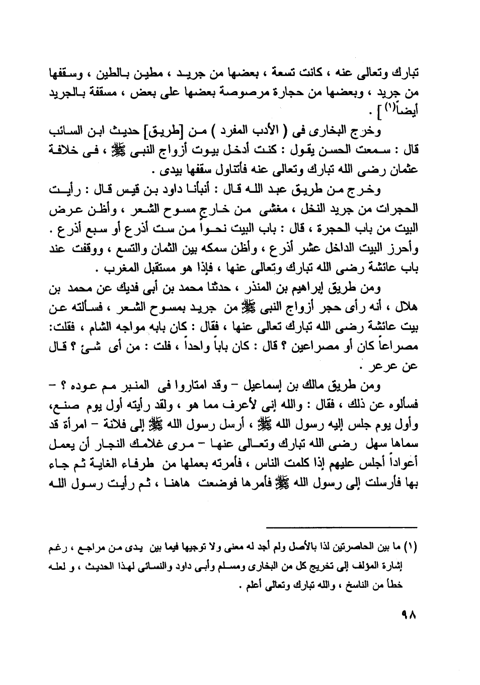 [ (1) ] ما بين الحاصرتين لذا بالأصل ولم أجد له معنى ولا توجيها فيما بين يدي من مراجع، رغم إشارة المؤلف إلى تخريج كل من البخاري ومسلم وأبى داود والنسائي لهذا الحديث، ولعله خطأ من الناسخ، واللَّه تبارك وتعالى أعلم.