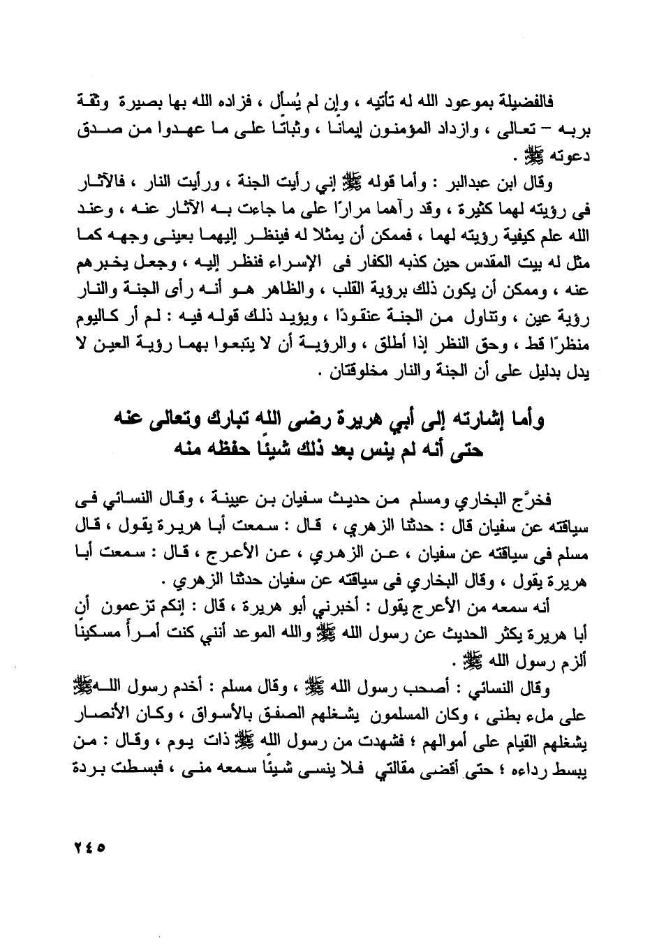 وأما إشارته إلى أبي هريرة رضي اللَّه تبارك وتعالى عنه حتى أنه لم ينس بعد ذلك شيئا حفظه منه