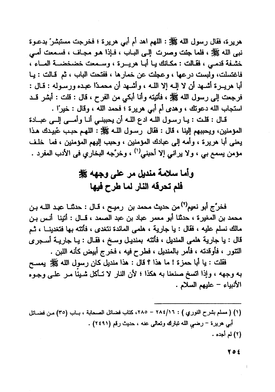 [ (1) ] (مسلم بشرح النوري) : 16/ 284- 285، كتاب فضائل الصحابة، باب (35) من فضائل أبي هريرة- رضي اللَّه تبارك وتعالى عنه، حديث رقم (2491) .