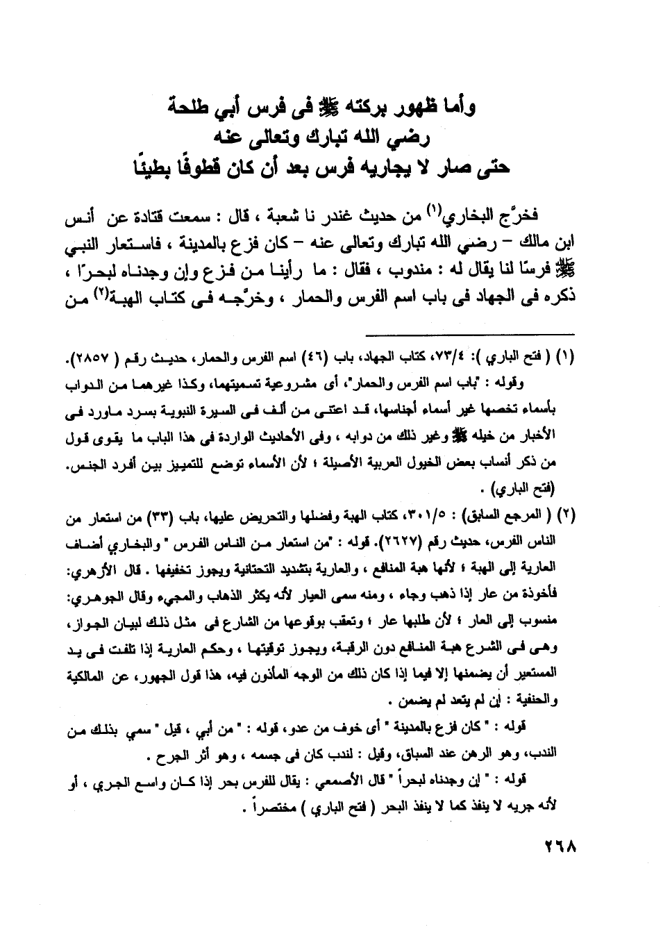[ (1) ] (فتح الباري) : 4/ 73، كتاب الجهاد، باب (46) اسم الفرس والحمار، حديث رقم (2857) .