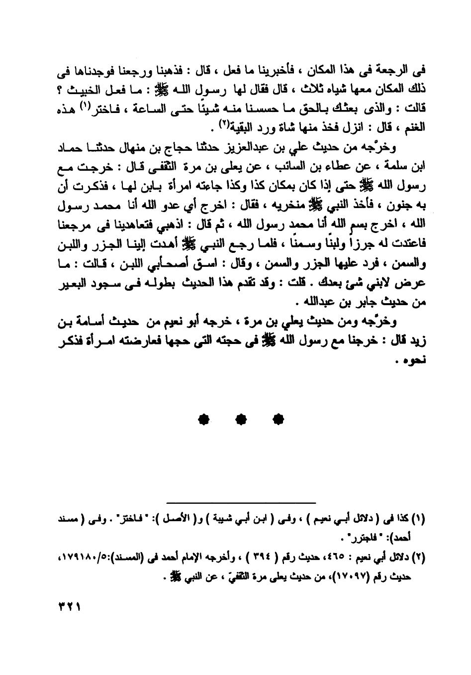 [ (2) ] دلائل أبي نعيم: 465، حديث رقم (394) ، وأخرجه الإمام أحمد في (المسند) : 5/ 179180، حديث رقم (17097) ، من حديث يعلى مرة الثقفيّ، عن النبي صلّى اللَّه عليه وسلّم.