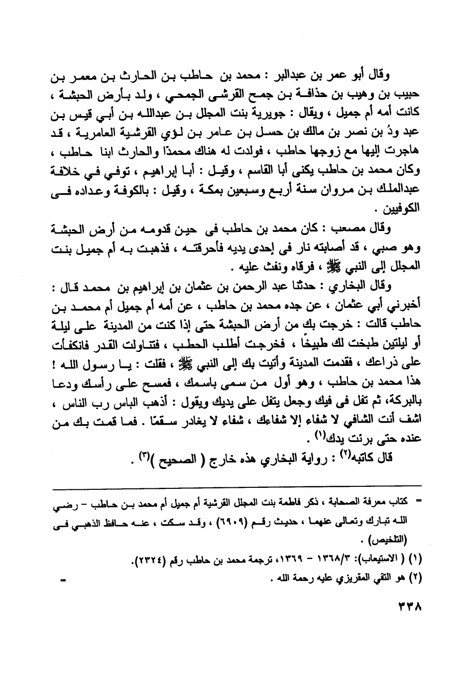[ (1) ] (الاستيعاب) : 3/ 1368- 1369، ترجمة محمد بن حاطب رقم (2324) .
