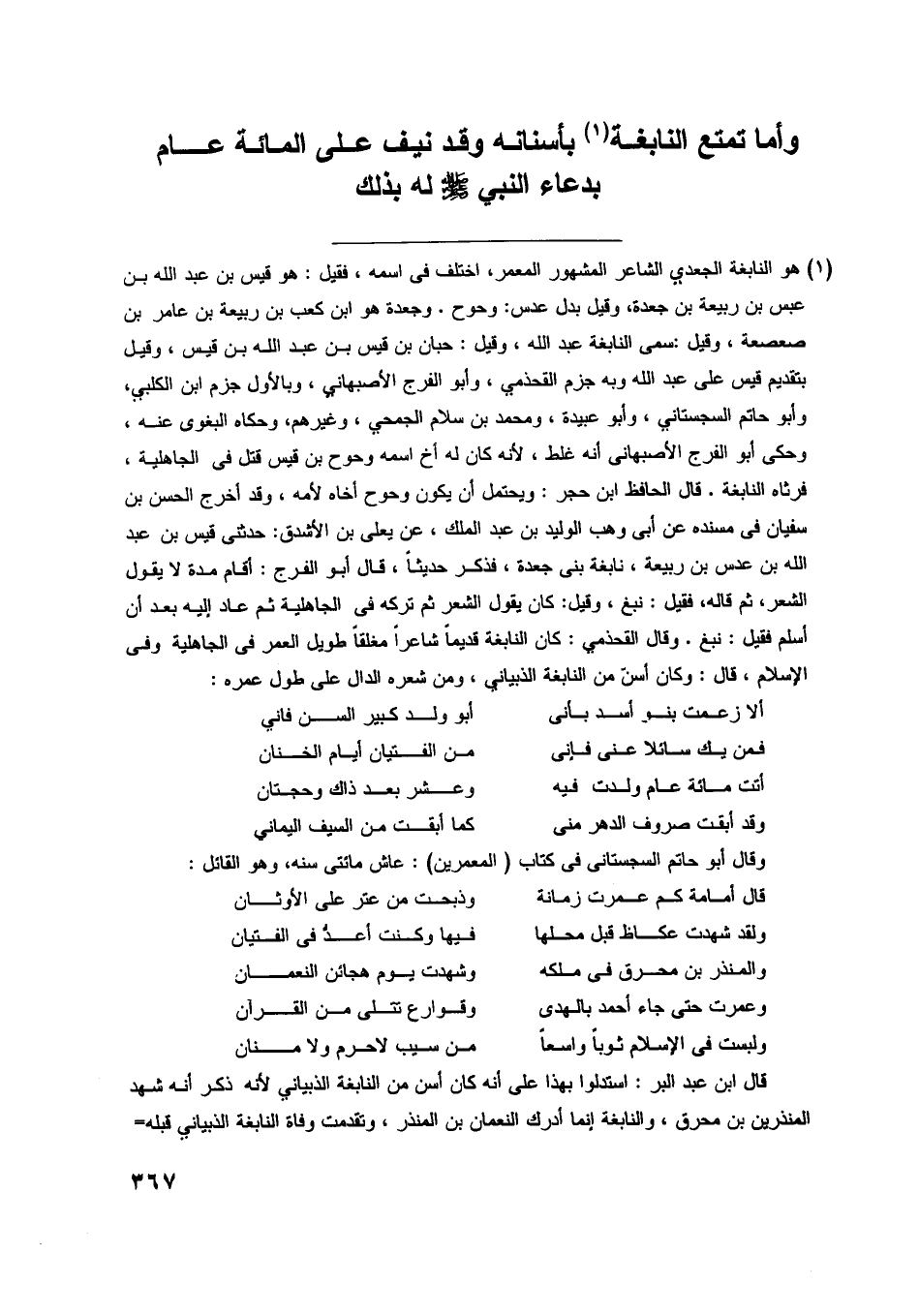 وأما تمتع النابغة [ (1) ] بأسنانه وقد نيف على المائة عام بدعاء النبي صلّى اللَّه عليه وسلّم له بذلك