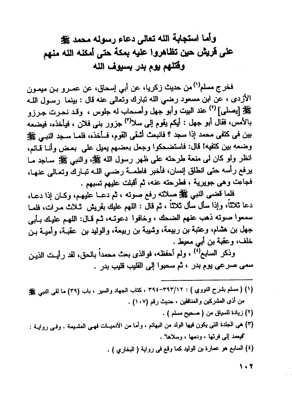 [ (1) ] (مسلم بشرح النووي) : 12/ 393- 394، كتاب الجهاد والسير، باب (39) ما لقي النبي صلّى اللَّه عليه وسلم من أذى المشركين والمنافقين، حديث رقم (107) .