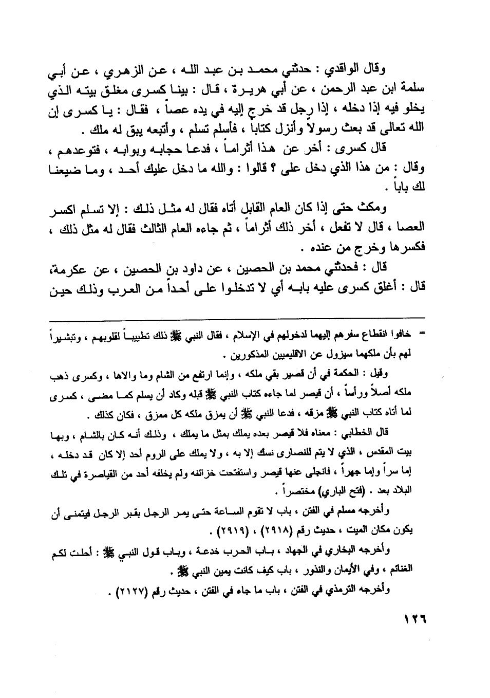 قال: فحدثني محمد بن الحصين، عن داود بن الحصين، عن عكرمة، قال: أغلق كسرى عليه بابه أي لا تدخلوا على أحدا من العرب وذلك حين