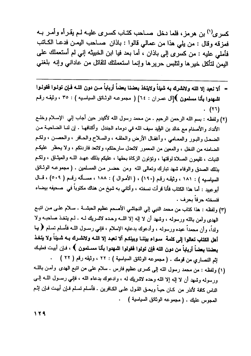 [آل عمران: 64] (مجموعة الوثائق السياسية) : 35، وثيقة رقم (26) .
