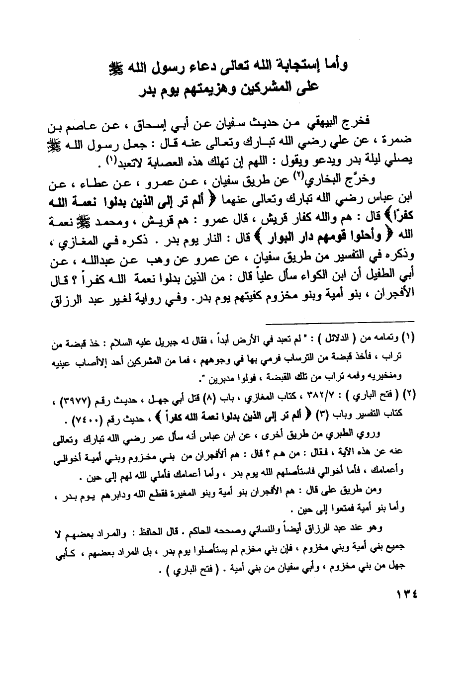 [ (2) ] (فتح الباري) : 7/ 382، كتاب المغازي، باب (8) قتل أبي جهل، حديث رقم (3977) ، كتاب التفسير وباب (3) أَلَمْ تَرَ إِلَى الَّذِينَ بَدَّلُوا نِعْمَتَ اللَّهِ كُفْراً، حديث رقم (7400) .