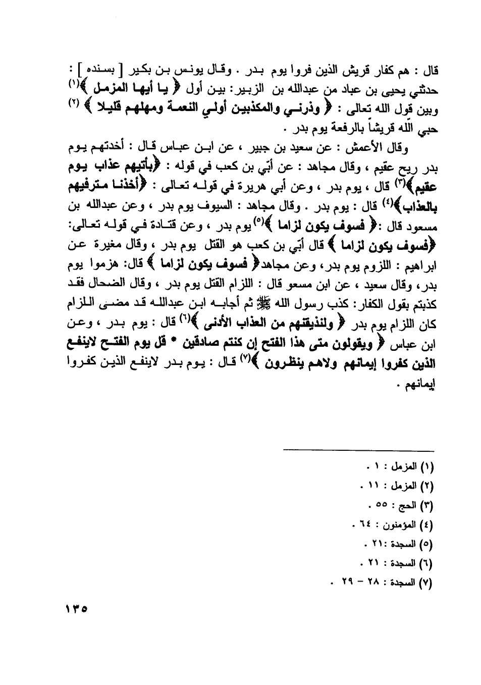حدثني يحيى بن عباد من عبد اللَّه بن الزبير: بين أول يا أَيُّهَا الْمُزَّمِّلُ [ (1) ] وبين قول اللَّه تعالى: وَذَرْنِي وَالْمُكَذِّبِينَ أُولِي النَّعْمَةِ وَمَهِّلْهُمْ قَلِيلًا [ (2) ] حبي اللَّه قريشا بالرفعة يوم بدر.