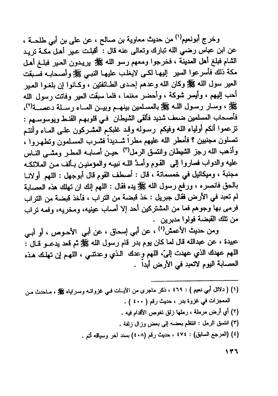 [ (1) ] (دلائل أبي نعيم) : 469، ذكر ما جرى من الآيات في غزواته وسراياه صلّى اللَّه عليه وسلم، ما حدث من المعجزات في غزوة بدر، حديث رقم (400) .