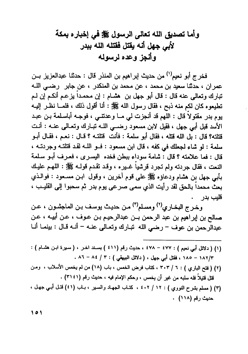 [ (3) ] (مسلم بشرح النووي) : 12/ 402، كتاب الجهاد والسير، باب (41) قتل أبي جهل، حديث رقم (118) .