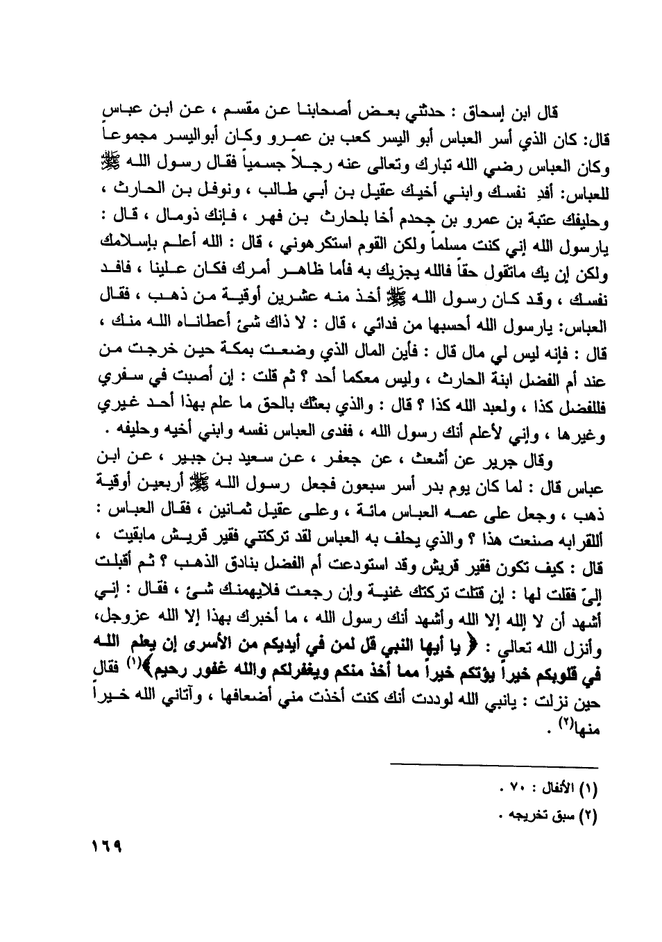 [ (1) ] الأنفال: 70.