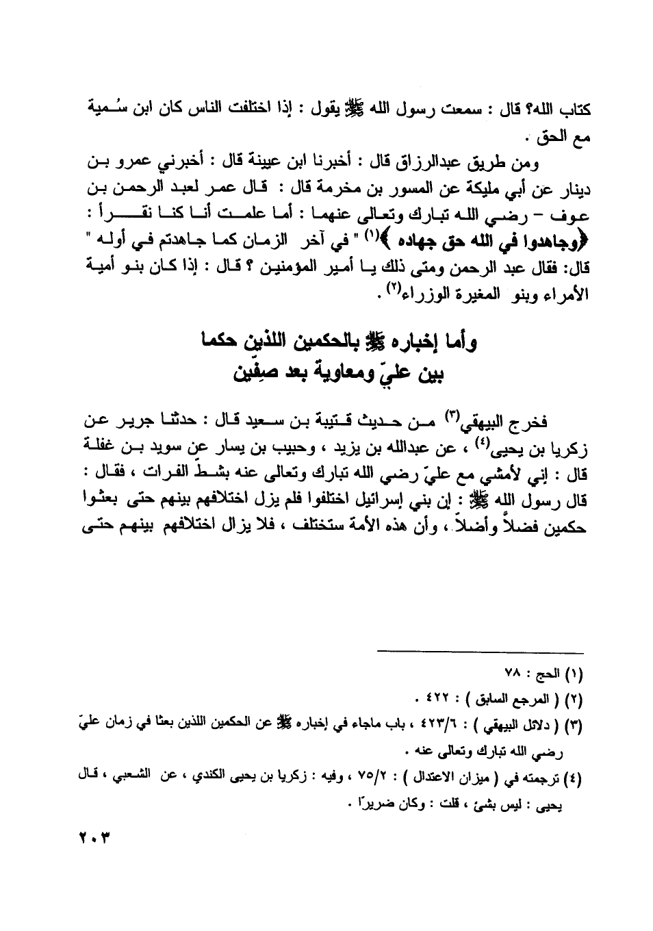 [ (3) ] (دلائل البيهقي) : 6/ 423، باب ما جاء في إخباره صلّى اللَّه عليه وسلم عن الحكمين اللذين بعثا في زمان عليّ رضي اللَّه تبارك وتعالى عنه.