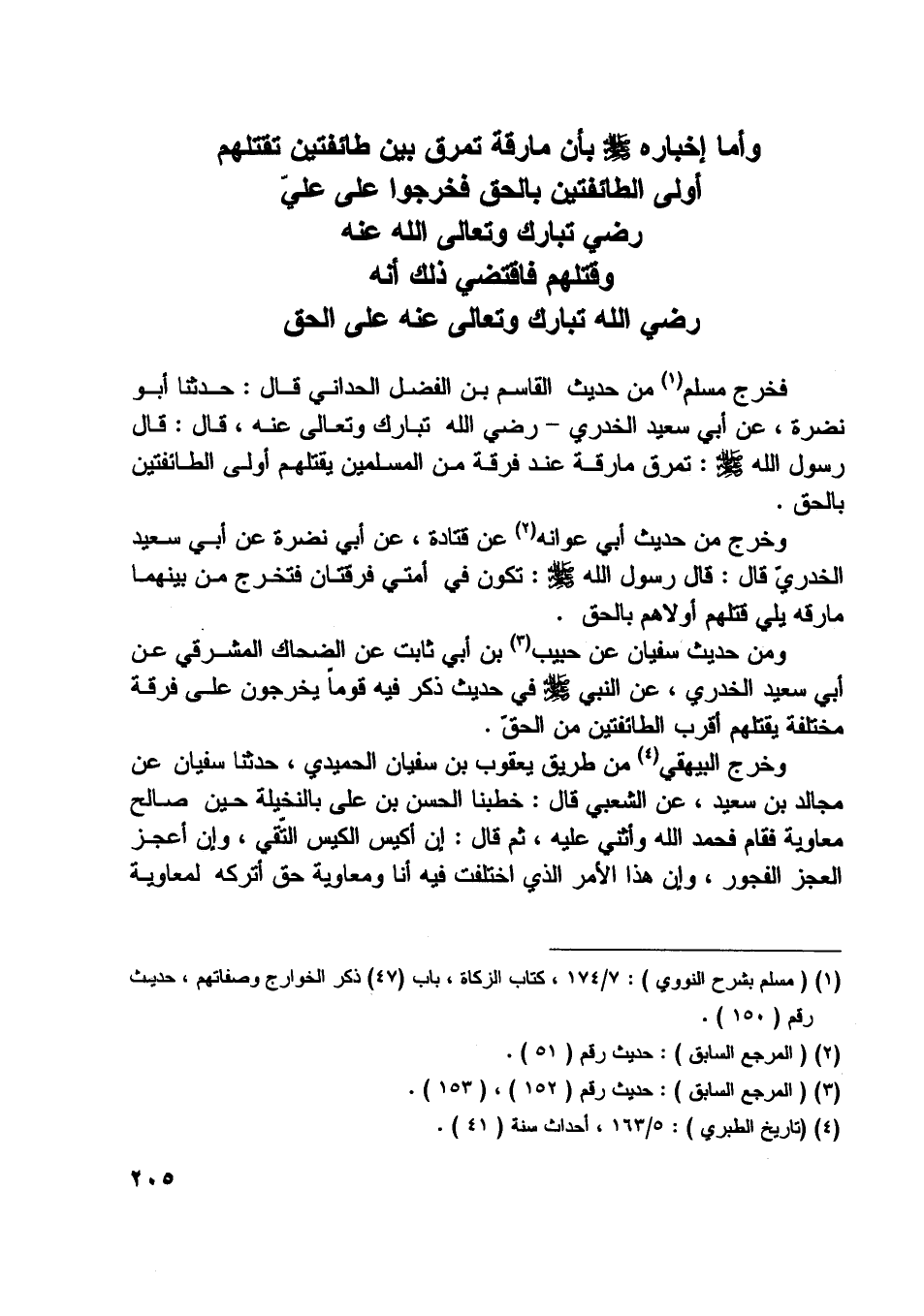 [ (1) ] (مسلم بشرح النووي) : 7/ 174، كتاب الزكاة، باب (47) ذكر الخوارج وصفاتهم، حديث رقم (150) .