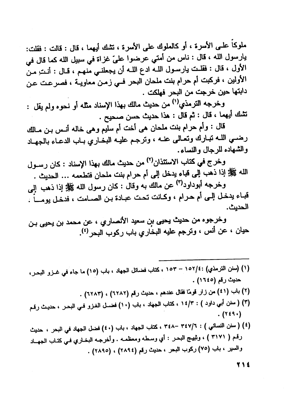 [ (1) ] (سنن الترمذي) : 4/ 152- 153، كتاب فضائل الجهاد، باب (15) ما جاء في غزو البحر، حديث رقم (1645) .