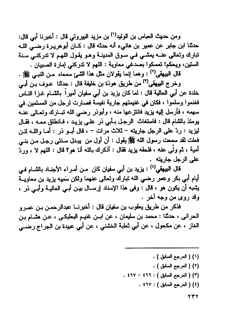 قال البيهقي [ (4) ] : يزيد بن أبي سفيان كان من أمراء الأجناد بالشام في أيام أبي بكر وعمر رضي اللَّه تبارك وتعالى عنهما ولكن سميه يزيد بن معاوية يشبه أن يكون هو، قال: وفي هذا الإسناد إرسال بين أبي العالية وأبي ذر، وقد روى من وجه آخر.