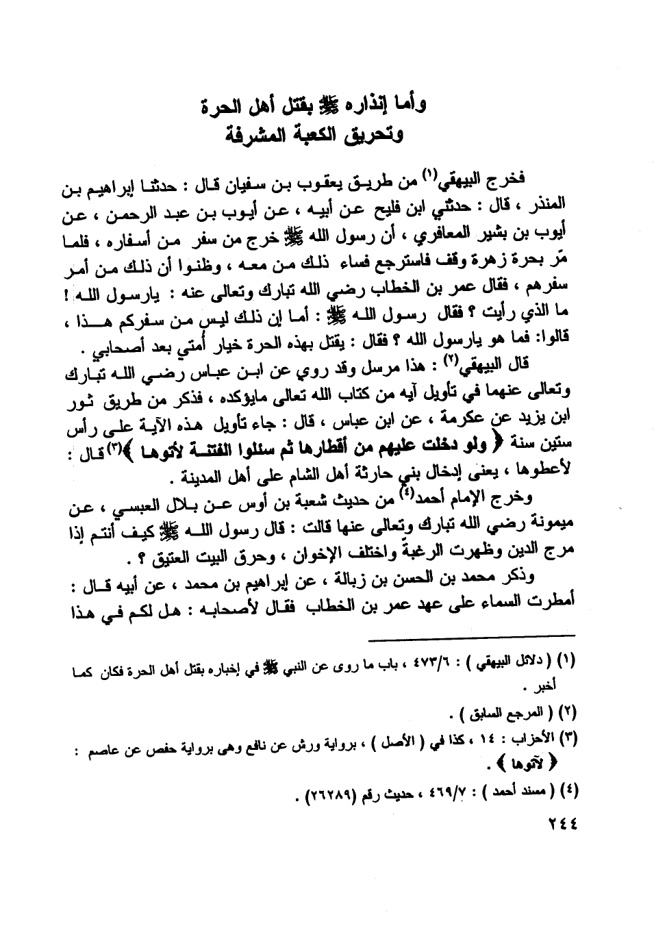 [ (1) ] (دلائل البيهقي) : 6/ 473، باب ما روى عن النبي صلّى اللَّه عليه وسلم في إخباره بقتل أهل الحرة فكان كما أخبر.