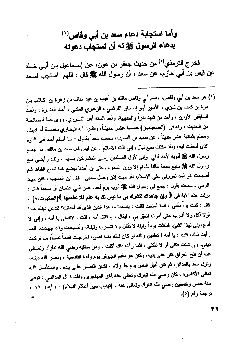 [ (2) ] (سنن الترمذي) : 5/ 607، كتاب المناقب، باب (27) مناقب سعد بن أبي وقاص رضي اللَّه تبارك وتعالى عنه. حديث رقم (3751) .