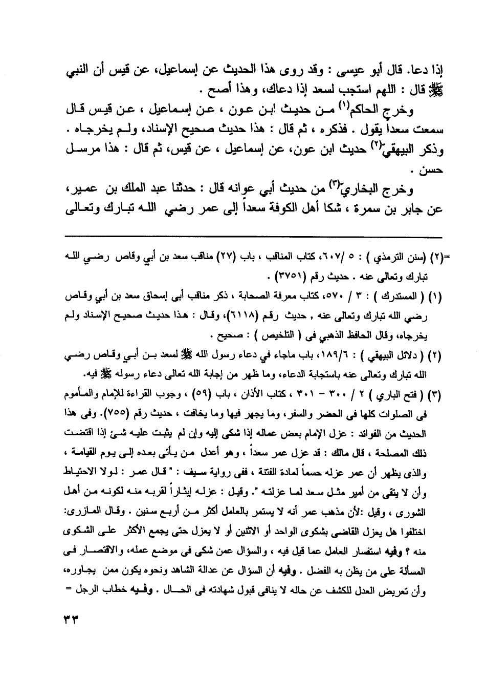 [ (1) ] (المستدرك) : 3/ 570، كتاب معرفة الصحابة، ذكر مناقب أبى إسحاق سعد بن أبي وقاص رضي اللَّه تبارك وتعالى عنه، حديث رقم (6118) ، وقال: هذا حديث صحيح الإسناد ولم يخرجاه، وقال الحافظ الذهبي في (التلخيص) : صحيح.