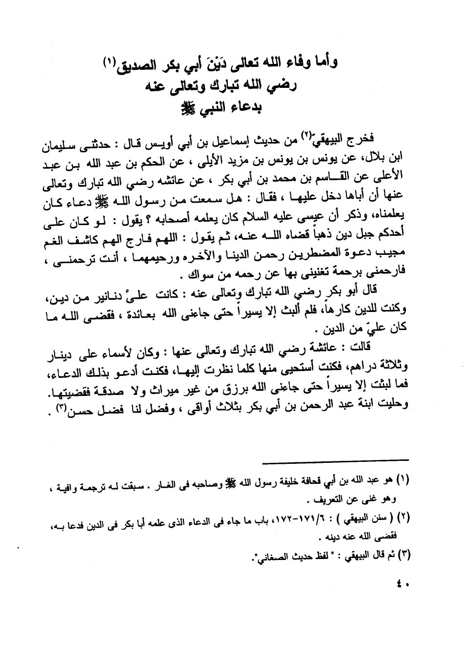 [ (2) ] (سنن البيهقي) : 6/ 171- 172، باب ما جاء في الدعاء الّذي علمه أبا بكر في الدين فدعا به، فقضى اللَّه عنه دينه.