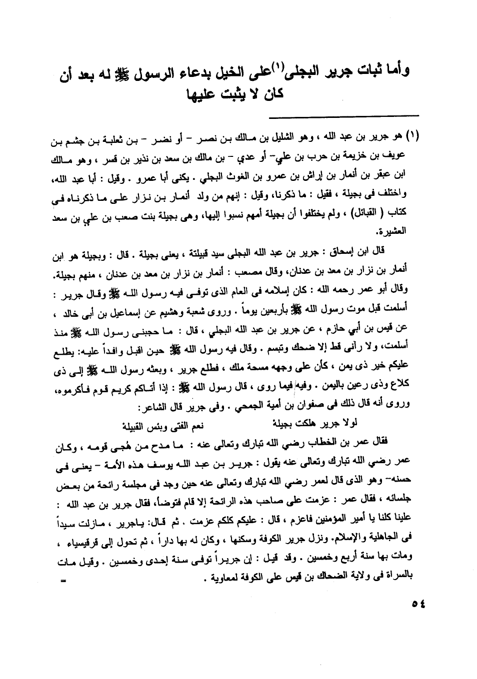 وأما ثبات جرير البجلي [ (1) ] على الخيل بدعاء الرسول صلّى اللَّه عليه وسلم له بعد أن كان لا يثبت عليها