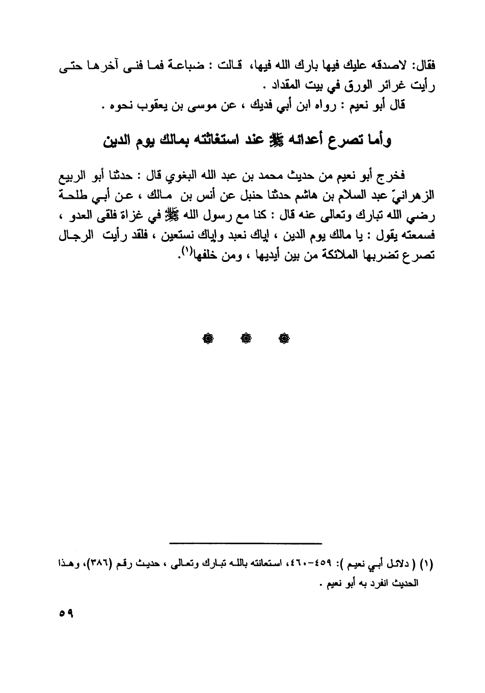 [ (1) ] (دلائل أبي نعيم) : 459- 460، استعانته باللَّه تبارك وتعالى، حديث رقم (386) ، وهذا الحديث انفرد به أبو نعيم.