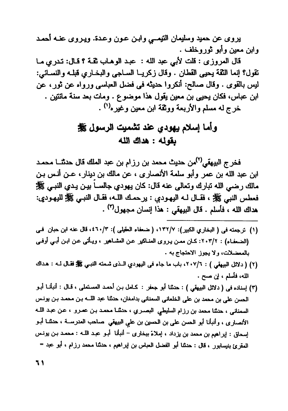 (دلائل البيهقي) : 6/ 207، باب ما جاء في اليهودي الّذي شمته النبي صلّى اللَّه عليه وسلم فقال له: هداك اللَّه، فأسلم،