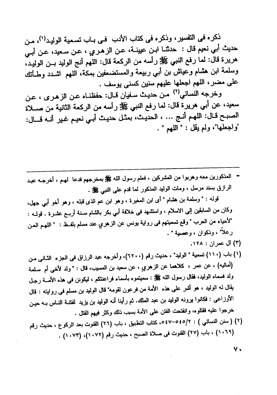 [ (2) ] (سنن النسائي) : 2/ 545- 547، كتاب التطبيق، باب (26) القنوت بعد الركوع، حديث رقم (1069) ، باب (27) القنوت في صلاة الصبح، حديث رقم (1072) ، (1073) .