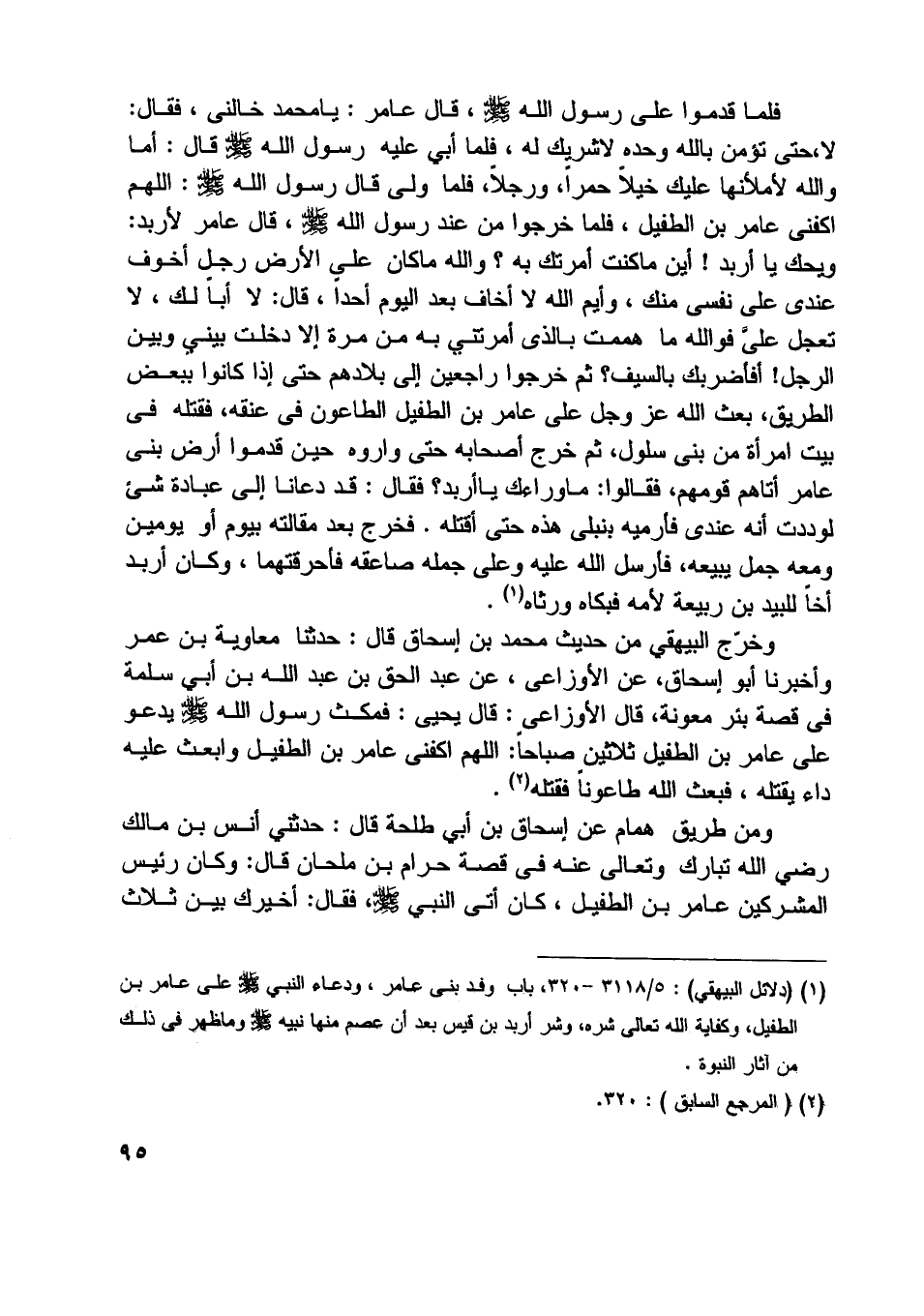 [ (1) ] (دلائل البيهقي) : 5/ 3118- 320، باب وفد بنى عامر، ودعاء النبي صلّى اللَّه عليه وسلم على عامر بن الطفيل، وكفاية اللَّه تعالى شره، وشر أربد بن قيس بعد أن عصم منها نبيه صلّى اللَّه عليه وسلم وما ظهر في ذلك من آثار النبوة.