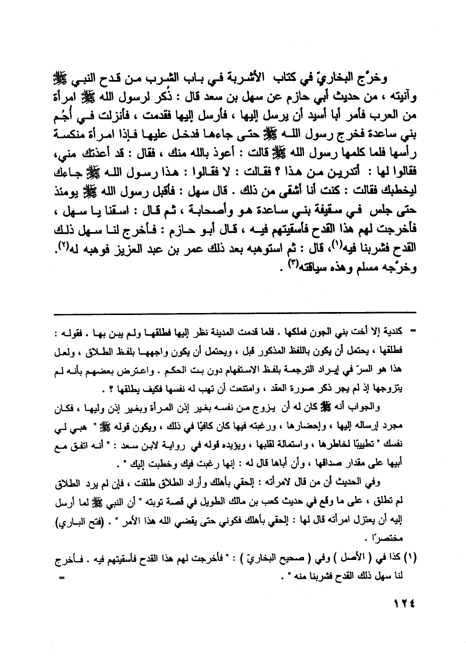 [ (1) ] كذا في (الأصل) وفي (صحيح البخاريّ) : «فأخرجت لهم هذا القدح فأسقيتهم فيه. فأخرج لنا سهل ذلك القدح فشربنا منه» .