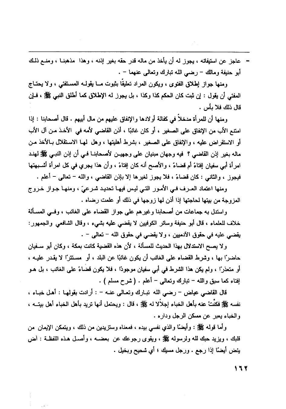 ولا يصح الاستدلال بهذا الحديث للمسألة، لأن هذه القضية كانت بمكة، وكان أبو سفيان حاضرا بها، وشرط القضاء على الغائب أن يكون غائبا عن البلد، أو مستترا لا يقدر عليه، أو متعذرا، ولم يكن هذا الشرط في أبي سفيان موجودا، فلا يكون قضاء على الغائب، بل هو إفتاء كما سبق واللَّه- تبارك وتعالى- أعلم. (شرح مسلم) .