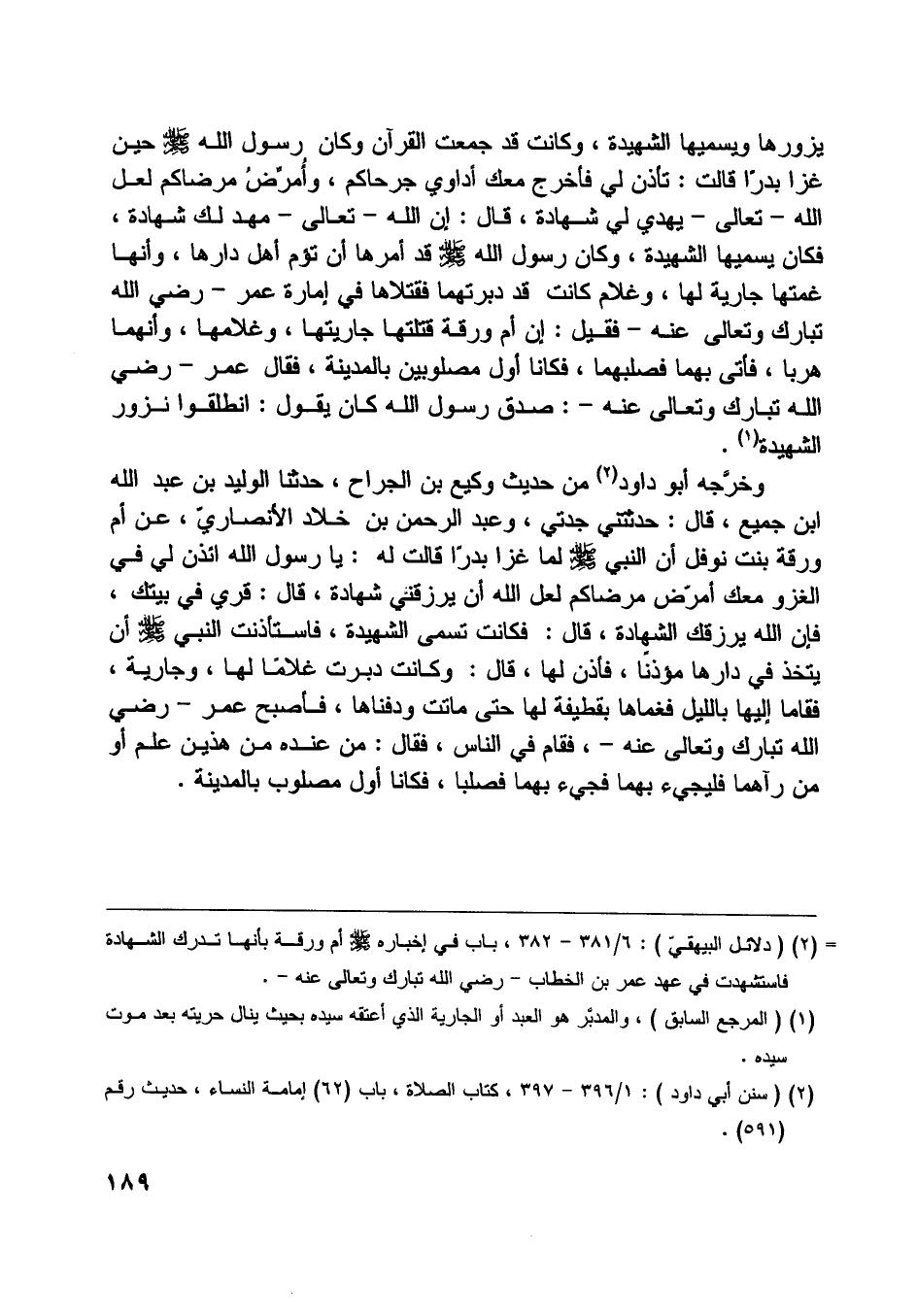 [ (2) ] (سنن أبي داود) : 1/ 396- 397، كتاب الصلاة، باب (62) إمامة النساء، حديث رقم (591) .